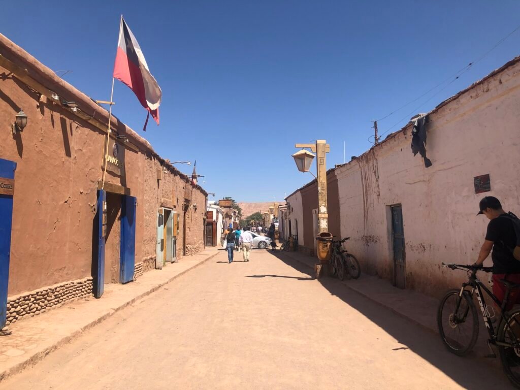 チリのサン・ペドロ・デ・アタカマにあるメインストリート、カラコレス通りに足を踏み入れると、まるで別世界にいるような気分になります。シンプルなアドベ建築の建物と土っぽい道に囲まれ、遠くには広大なアタカマ…